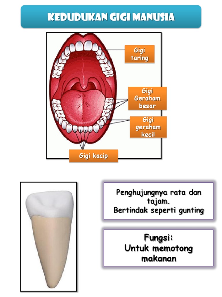 Dengan gigi kita dapat menggigit memotong merobek mengunyah makanan yang kita makan. Agi umur dari masa gigi pertama tumbuh hingga 2 tahun Gunakan ubat gigi berfluorida dengan kandungan 500 1000 ppm. Selain itu Bahasa Malaysia juga merupakan bahasa ilmu.